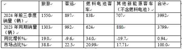 旅游类领跑、燃料电池领涨!2024年前三季度高档客车市场特点小结