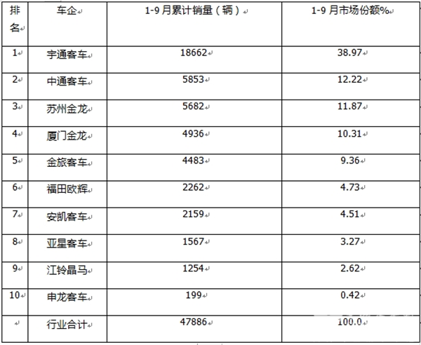 宇通强势夺冠,“两通三龙”包揽前五!9月及1-9月座位客车销量排行榜