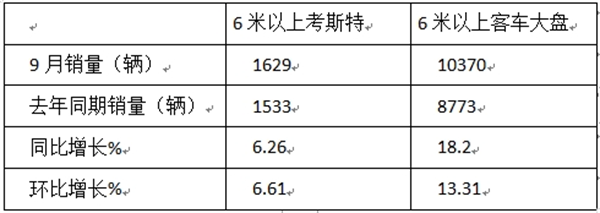 总之,今年9月考斯特客车市场升温,但不太明显,“金九”势头不强。