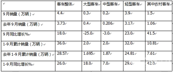 ---今年9月农村客车终端销量同比增长超4成(41.5%),跑赢今年9月客车大盘(18%)及轻客整体市场增速(23%),并领涨各客车细分市场。