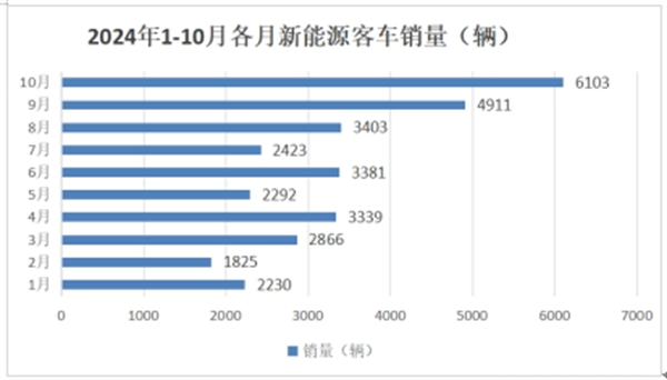 根据中国客车统计信息网数据,2024年1-10月各月新能源客车销量统计: