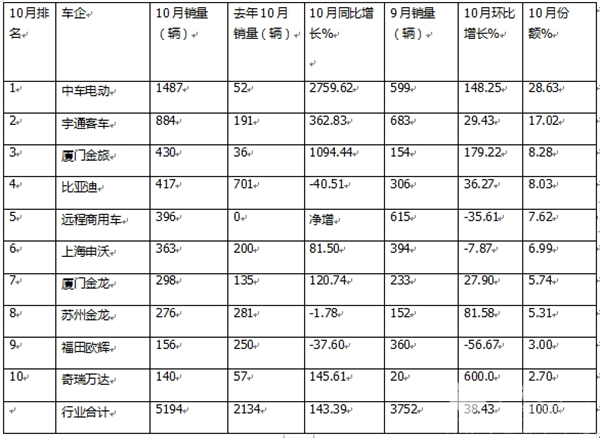 - 10月新能源客车:“银十”成色十足!宇通霸榜,中车\金旅分列二三