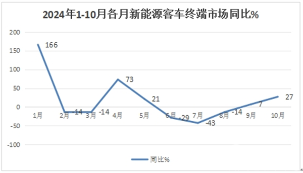 截图1,2024年1-10月各月新能源客车终端上牌销量及同比(数据来源:电车汇提供的终端上牌信息)