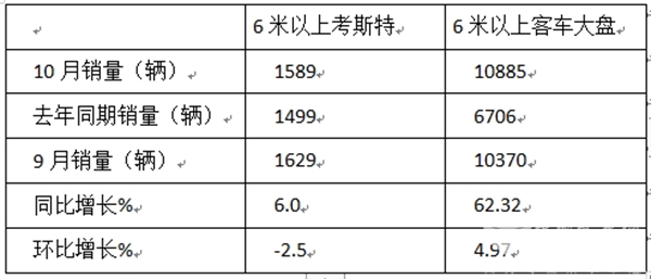 今年10月考斯特客车销量同比小增,据分析主要得益于: