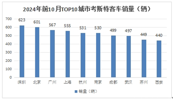 上图还显示,2024年1-10月考斯特客车重点流向经济发达、旅游资源较为丰富的地区。