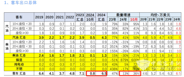 截图1,2024年10月及1-10月我国客车出口数量及同比(数据来源:中国汽车流通协会提供的海关数据)