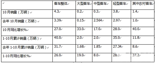 ---今年10月农村客车终端销量同比增长40%,跑赢今年10月客车大盘(27%)及轻客整体市场增速(28%),并领涨各客车细分市场。