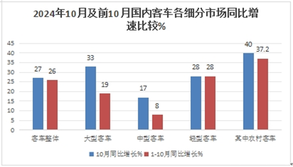 总之,不论今年10月还是前10月,国内农村客车市场同比增速均领涨国内客车各细分市场,成为“跑得最快”的细分车型。