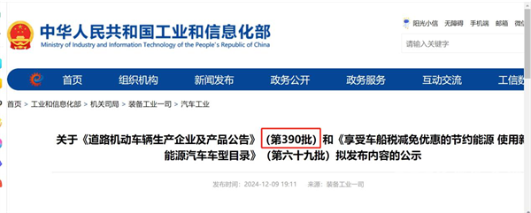 2024年12月9日,工信部发布关于《道路机动车辆生产企业及产品公告》(第390批公告,下也称“本批次公告”),这是2024年以来工信部发布的第12个批次的汽车新车产品公告。如果不出意外的话,这也是2024年工信部发布的最后一个批次的新能源汽车新品公告了。