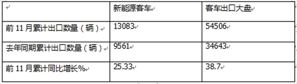 今年11月新能源客车出口同比增长,主要是去年同期出口基数较低导致的。