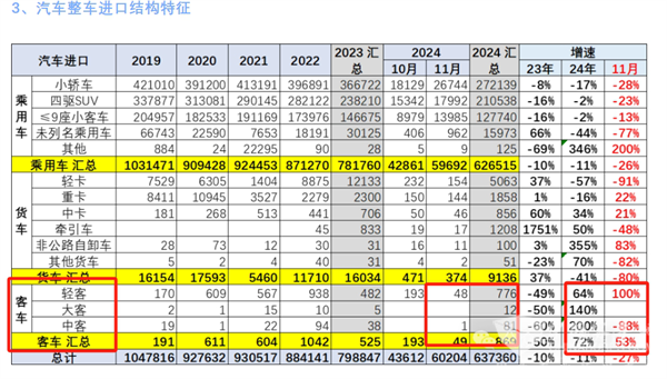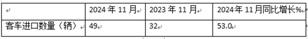 表2,根据中国汽车流通协会提供的数据,2024年11月我国客车进口数量同比增长53%
