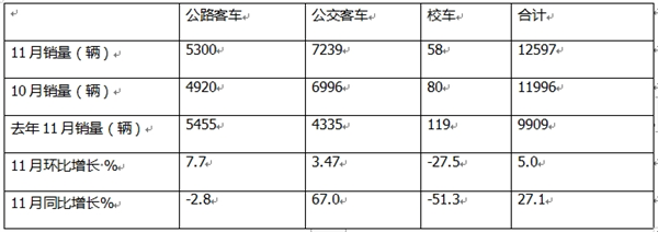 据分析主要是今年11月是校车市场淡季,加之前几个月学校已提前购买了校车,一定程度上透支了今年11月的校车市场需求。