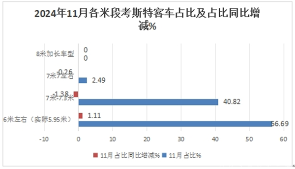 表2,根据上牌信息,2024年11月考斯特客车按长度段车型划分销量结构: