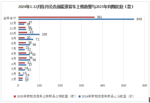 正是上述几个因素的共同作用,导致2024年新能源客车公告中的新品上榜数量同比大涨超5成。
