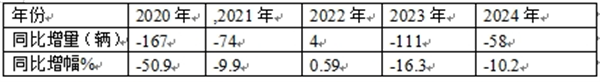 从上表看出,价格在200万以上的高档客车细分市场,近年2020—2021年及2023年-2024销量同比均为下降,只有2022年同比是增长的(增长0.59%)。