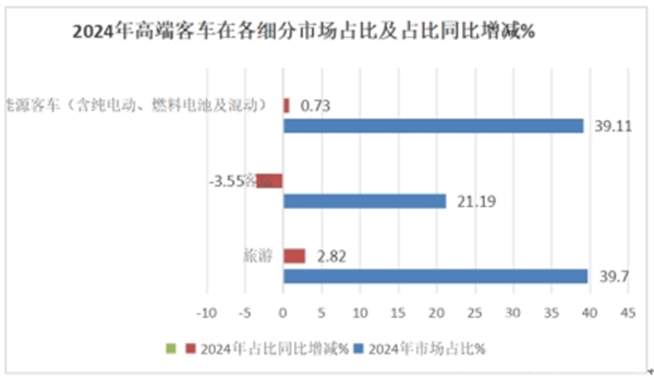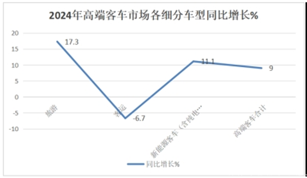 上图表可见,2024年高端客车在各细分市场的表现不尽相同:
