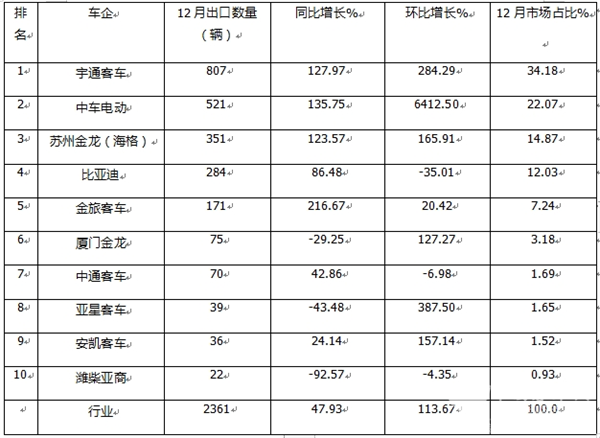 那么2024年12月及全年我国新能源客车出口市场有哪些特点?
