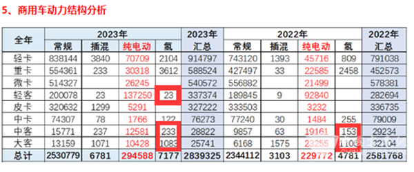 上表显示,2024年12月燃料电池汽车销量同比增长-76.7%,远远跑输2024年12月6米以上大中型新能源客车124.24%的同比增速;2024年1-12月燃料电池汽车累计销量同比增速43.1%,也明显跑输2024年1-12月大中型新能源客车市场43.1%的累计同比增速。