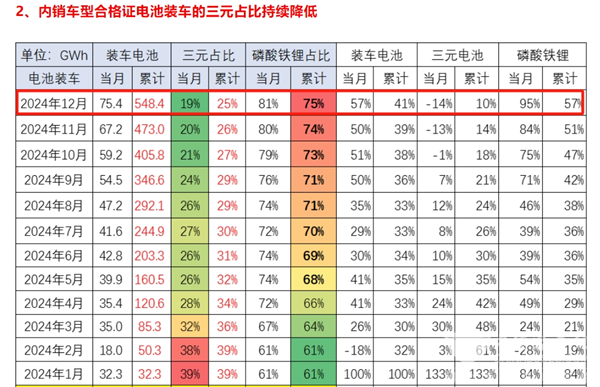 根据中国汽车流通协会提供的数据(见截图1),2024年 12月我国动力电池装机量共计75.4GWh,同比增57%;