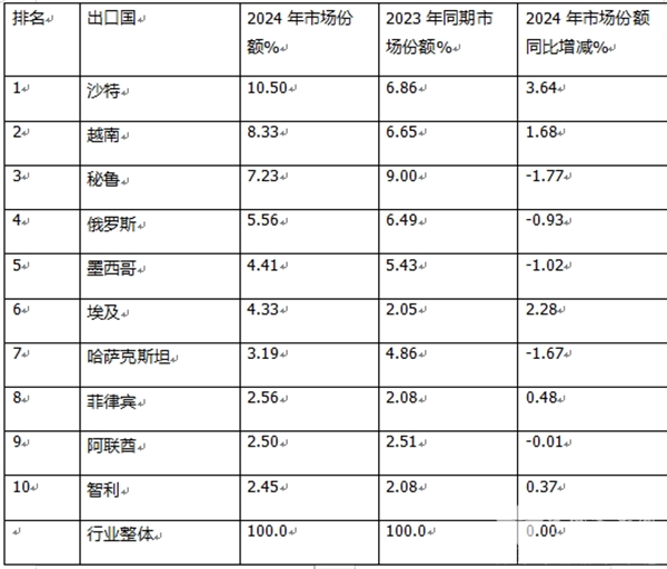 ---其余出口国市场占比均在5%以下。