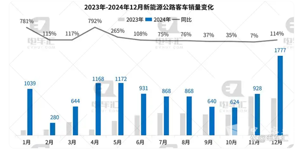 上述4个因素的综合作用,导致了2024年12月新能源客车终端销量同环比增速“双破200%”