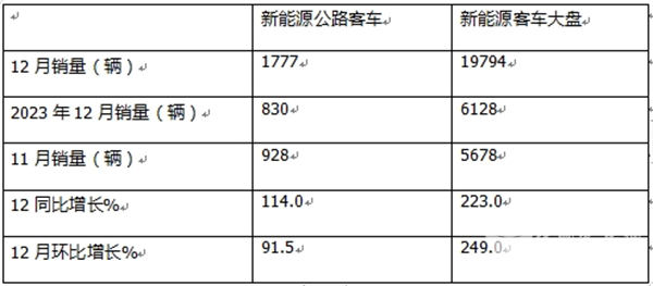 表1,根据终端上牌数据,2024年12月新能源公路客车同环比增速与新能源客车大盘比较: