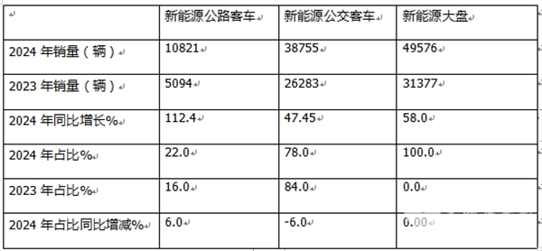 2024年新能源公路客车销量同比大涨112.4%,跑赢并领涨新能源客车终端大盘;