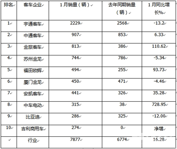 总之,今年1月前10车企市场占比同比5增5降,其中金旅客车占比同比增加最多。