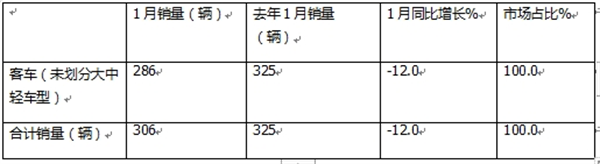 总之,比亚迪客车今年1月销量同比下降12%。