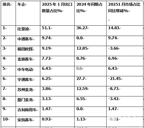 那么2025年1月其中的新能源客车出口咋样?竞争格局有变动吗?