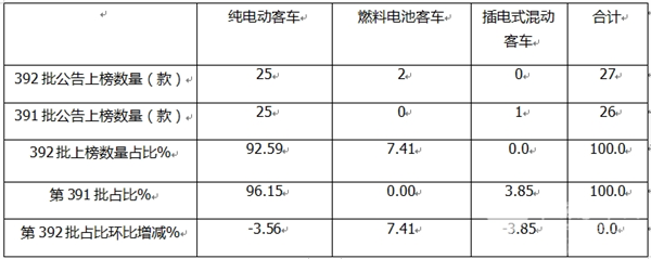 燃料电池环比增加最多 工信部第392批新能源客车新品公告特点解读