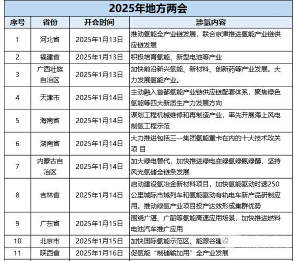 二是近期21个省市都将氢能布局写入了2025年的政府工作报告,给客车企业在2025年推广燃料电池客车带来新的希望。