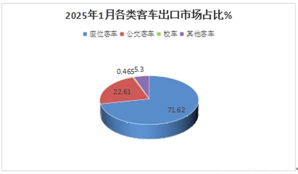 上两图可见,座位客车与公交客车是2025年1月我国客车出口最多的两个主要细分市场。
