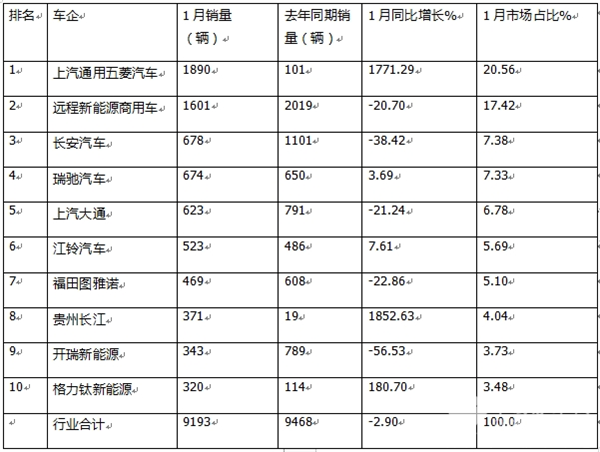 1月新能源轻客:未现“开门红”!中面领涨领跑;五菱\远程\长安居前三