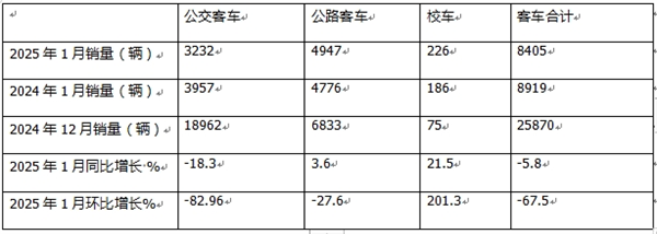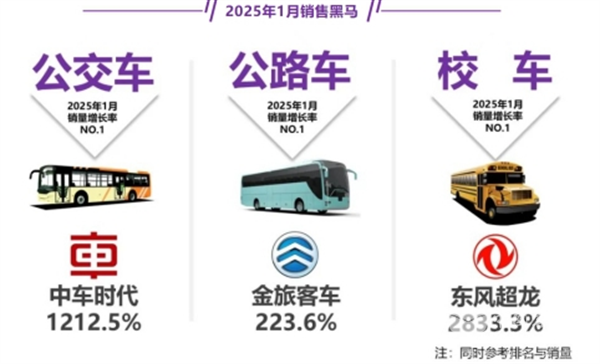那么2025年1月公路、公交和校车三大细分市场销量有何主要特点?现予以简要分析。