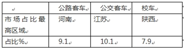 2、公交客车占比分别为38.5%,居第二,占比同比减少5.9个百分点,是占比同比减少最多的细分市场,表现最为差劲。