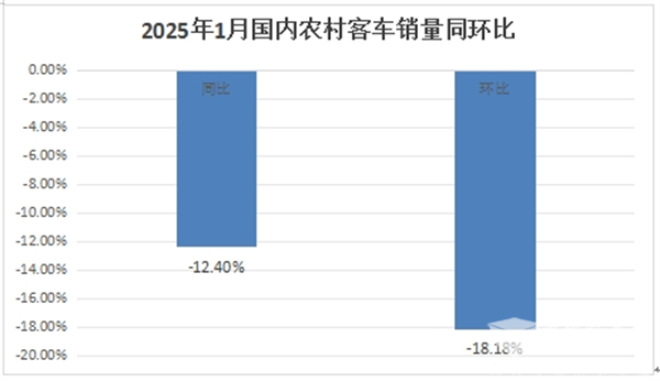 根据终端上牌数据,2025年1月国内农村客车销量0.81万辆(8103辆),同比下降12.4%,环比下降18.18%,呈现了同环比“双降”的态势。