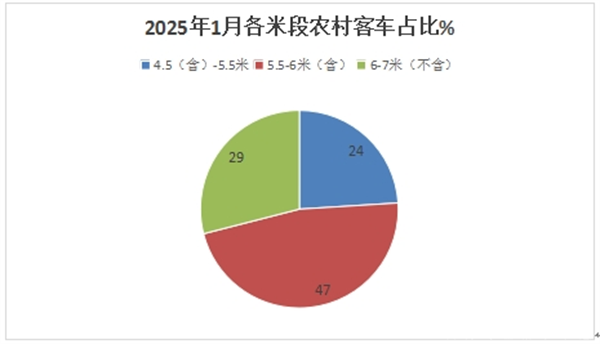 表4,根据终端上牌信息,2025年1月4.5-7米段农村客车销量中,5-6占比均为最大,成为主打车型。