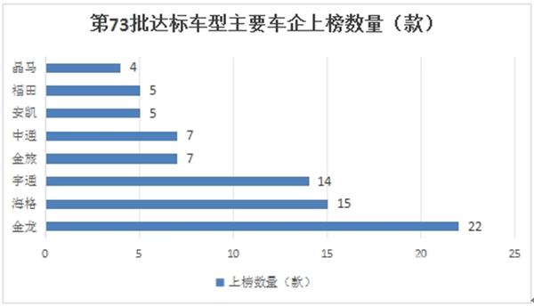 上表图说明,在第73批交通部上榜达标道路运输客车车型中: