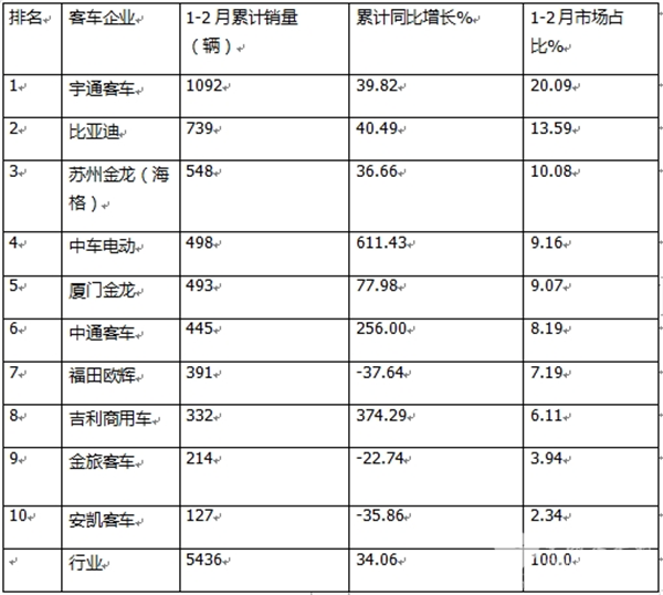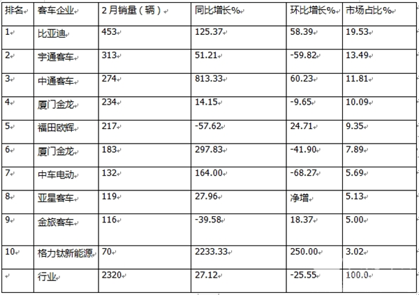 上图表可见,在今年前2月6米以上新能源客车市场中: