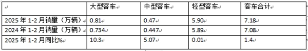 表4,根据商用车专业委员会提供的批发数据,2025年1-2月大、中、轻客车累计销量同比: