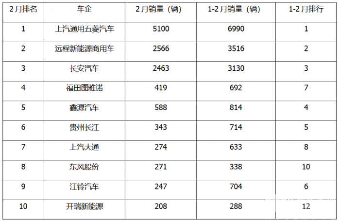 上表显示,在2025年2月新能源轻客销量中: