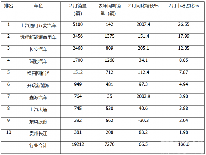 19212 辆!新能源轻客2月销量同比暴涨164% 五菱连续10月霸榜