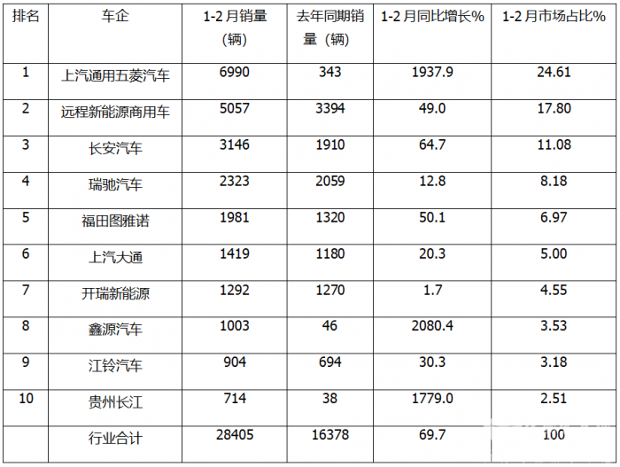 上表显示,在2025年1-2月新能源轻客累计销量中: