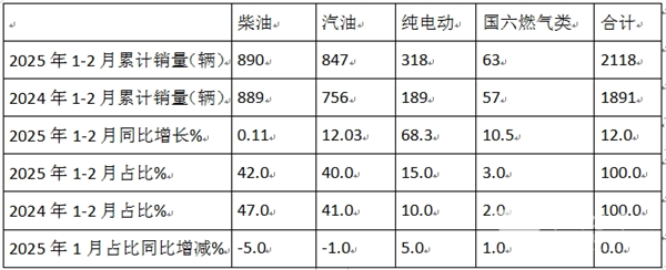 总之,“纯电动势头最猛,柴油车型领跌”成为2025年1-2月国内考斯特客车市场的又一个特点。