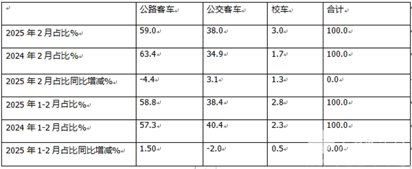 总之,无论是2025年2月还是1-2月,公路客车占比同比均增加最多而领跑大盘。