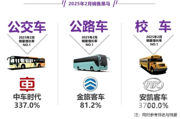 总之,在2025年2月公路、公交和校车三大客车细分市场中,公交表现最抢眼;前2月校车领涨,表现最“给力”;而公路客车在2月及前2月均处于领跑地位。