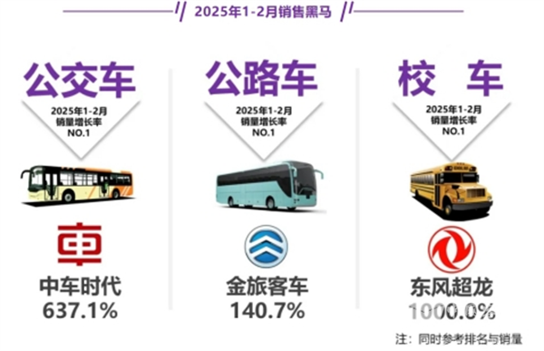 那么2025年2月及1-2月公路、公交和校车三大细分市场销量有何主要特点?现予以简要分析。