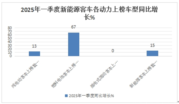 上图表显示,在2025年一季度3个批次的公告中,各技术路线新的能源客车上榜数量及占比、占比同比增减: