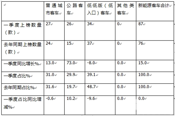 看点三、低地板(低入口)城市客车居榜首领跑,公路客车领涨